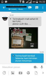 Berikut saya sampaikan beberapa testimoni konsumen yang telah membeli produk denature, InsyaAllah kami akan selalu menjaga Amanah dan Kepercayaan konsumen akan produk kami.